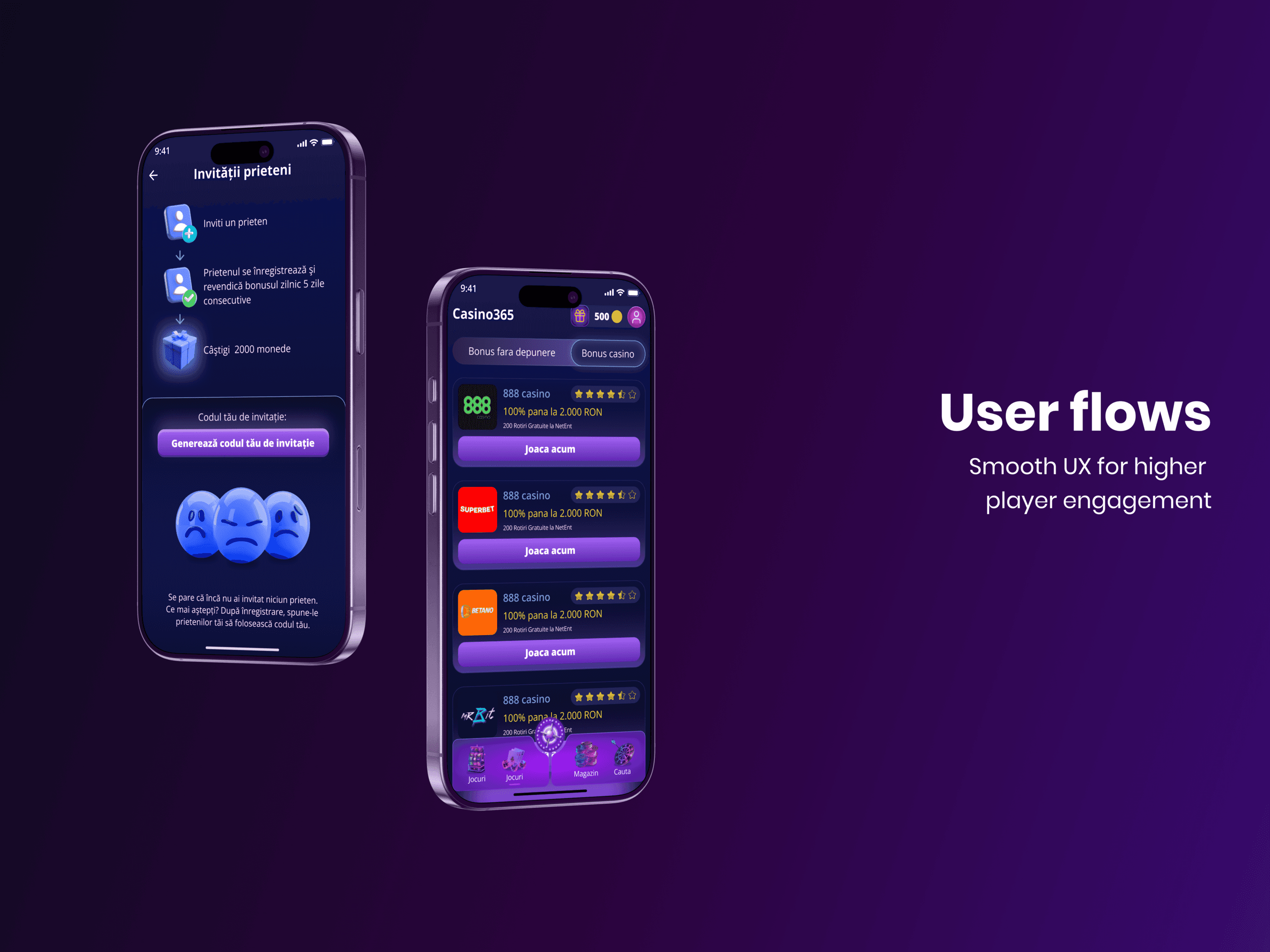 We approached Casino365 as a next-gen iGaming mobile app, built around player behavior and interaction patterns. Key design elements included: